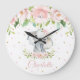 Rosa Blommigt Elephant Girl Nursery Stor Klocka