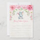Meddelandekort för ljus- och flickduschtid för barn med en vidsträckt vattenfärgselefant omgiven av söt rosa blommor och grönt lövs Matchningstidsskylt finns här: https://www.zazzle.com.au/pink_roses_elephant_time_capsule_1st_birthday_sign-228909703022301339