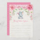 Rosa Blommigt Elephant Time Capsule-meddelandekort Inbjudningar