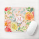 Denna musmatta av elegant har en vattenfärgsutformning med blommönster, ro, eukalyptus, blad, faux glitter och ett monogram. Anpassa den med en början.