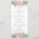 Vackra bröllop-menykort med rosa blommigt vattenfärgen eukalyptus och guld löv. Valet av perfekt för vår och sommar-bröllop.