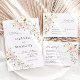 Boho Rosa ros Blommigt Sage Oliv grönt botaniska Elegant bröllop-informationskort. Stil-informationskort för bohemiska rosa ros bouquet med blommigtar för elegant och rosa och botaniska produkter i handtryckt vattenfärg. Den bakgrunden till rosa färg är fantastisk för boho modern bröllop och blommigt bröllop. Kort med enkla utskrivbara uppgifter för vår, sommar, höst och vinterbröllop.