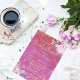 Fin personlig inbjudningskort för möhippan-design med rosa ros, eukalyptus löv, fjärilar och gnistor på en rosa fuckbakgrund.