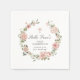 Ett modernt botaniskt andetag dekoreras med dammig rosa ros. Den första Communicantens namn är skriven i ett stort skriptteckensnitt. Den första kommissionen och ett tack följer.