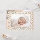 Det här nyheterna om fosterförlossningen i flicka i den rosa blommigten har små blommar och en mjuk och grå bakgrund i mönster. Lägg till fyra foton och anpassa dig helt enkelt efter baby namn, födelsedatum, vikt och längd. Anpassa bara budskapet på baksidan till ett vackert födelsemeddelande.