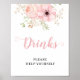 Rosa Blommigt Flicka Drinks Baby Shower-skylt Poster