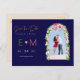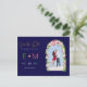 Rosa Blommigt för Photo Bröllop spara datum Navy Vykort