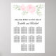Vackert rosa blommigt sittande diagram för ett bröllop. Två stora rosa ros ser vackra ut mot en grönt löv. Söker efter att sätet är skrivet med ett enkelt teckensnitt och en elegant. Namnen brid och groom skrivs nedan i ett romantiskt skript. Det är mycket lätt att redigera dessa och listorna i bord nedan.