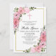 Rosa ros och människor skapar en mycket söt blommigt gräns om denna baptisminbjudan. De är inkapslade i en mängd grönt och löv skapar en modern botanisk vibe. Din dotters namn är skrivet i ett stort skript. Baksidan av inbjudan är en ljusgig och feminin rosa. Säg mig (jag heter Nelda) om du behöver samordnande saker. Jag är alltid beredd att hjälpa till. Tack för att du besökte min Zazzle-butik.