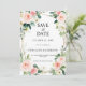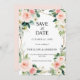 Elegant rosa/persikofärgat botaniskt bröllop spara datum-kort för blommigt i vår med en bukett av mjuk pastellfärgad ro, ponnyer och vattenhästar i skuggor av rosa, persikor och grädde med lush grönt botaniska löv och eucalyptus löv. Ett modernt designval som är perfekt för vår och sommartid för rosa under temat bröllop. Kontakta mig om du vill ha ytterligare anpassningar eller matchande artiklar.