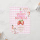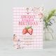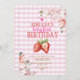 Rosa Blommigt Gingham Berry Första födelsedag Inbjudningar