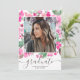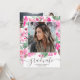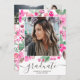Rosa blommigt greenery script 3 foton studenten inbjudningar