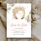 Akta dina gäster med detta westerna tema och spara datumet med rustiska hästskogar och vackra blommor med modern typografi. Lägg bara till din händelseinformation i den här mallen för enkel använda för att göra det till en sorts Spara datumkortet.