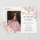Rosa Blommigt Guld Quinceanera Spara datum Meddelande Vykort