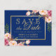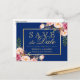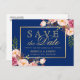 Rosa Blommigt Guld Royal marinblå - spara datum Meddelande Vykort