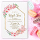 Gratulera till den upphetsning som din växande familj och dina vänner och nära vänner har i inbjudan till ett högt te med den här elegant guld-geometriska ramade inbjudan till blommigt för babydusch för rosa.