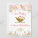 Rosa Blommigt, högtea första födelsedag Inbjudningar
