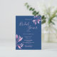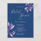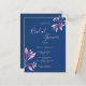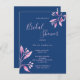 Ett enkelt, trendig inbjudningskort för möhippan i blått och rosa. En blå bakgrund dekorerad med botaniskt rosa färgad grenar och löv. Modern stor, hanterad text, typografi med texten: Möhippa. Anpassa och lägga till detaljer om namn i bruden och party. Rosa färgad text. Bakåt: blå bakgrund. Tips! Om du inte vill att det ska se ut som ett vykort klickar du på anpassa, går till baksidan och tar bort delaren och lägger till frimärke.
