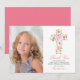 Det här enbildkortet för första Heligan av gemenskap tack vare dig har en rosa blommigt vattenfärg kor med , korala och gröna löv och löv. Perfekt för alla religiösor: Första gemenskap, baptism, julklappning eller bekräftelse.