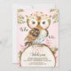 Rosa Blommigt Krona Uggla, födelsedagsinbjudan Inbjudningar