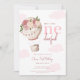 Rosa blommigt Luftballong 1:a födelsedag Inbjudningar