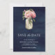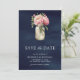 Rosa Blommigt Mason Burk Photo Navy Blue Bröllop Spara Datumet