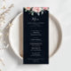 Det här rosa menykortet för blommigt är perfekt för ett modernt bröllop. Utformningen har handritad rosa ro och människor med grönt och grått löv i en mörk blått bakgrund som inspirerar till naturskönhet. Den här menyn kan användas för bröllopsmottagning, repetitionsmiddag, möhippa eller vilken händelse som helst.
