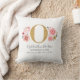 Rosa Blommigt Monogram Initial Brev O Födelseort Kudde