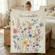 Söt rosa blommigt filt med personlig namn. Fintvätt av vildblommor i vattenfärg. Lätt att ändra texten.