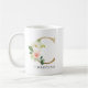 Cute, elegant i monogram kaffe mugg med brev ’C’ i en faux guld-folie stil med vit och rosa vattenfärg och grönsak. Anpassa kaffet mugg genom att lägga till ditt namn eller din anpassningsbar.