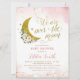 Rosa Blommigt över inbjudan till babyduschen i Måne