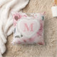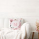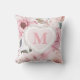 Elegant dekorator för rosa med vattenfärgad blommigt dekorativ kudde med vitt pärltrimmat hjärta och monogram/ början.
