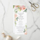 Designad för att matcha samlingen Klassisk Rosa Blommigt bröllop, har den här dubbla-sidformade designen blommigt ram och dina ceremoniuppgifter. På baksidan visas medlemmarna i bröllopsfesten. Den här lättredigerade mallen är redot att vara personlig med din ceremoniinformation och brudens sida-medlemmar.