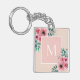 Fantastiskt monogramnyckelring för rosa med av rosa och grönt vattenfärgsblommor. Söt, elegant och söt. Anpassa med start och bild. Underbar för Mors dag-gåva, födelsedagspresent eller gåva till lärare och kolleger.