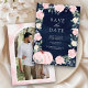 Rosa Blommigt Pumpkin Navy Blue Photo Bröllop Spara Datumet