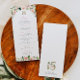 En quinceañera-meny med blommigt med söt vattenfärger i mjuka rosa-, vit-, grönt- och guld-toner och ett modernt teckensnitt. Perfekt för en quinceañera-födelsedagsfirande och du kan koppla ihop den med vad som helst i den samlingen för att få ett sammanhängande utseende.