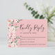 Rosa Quinceañera Party OSA kort: Den här enkla och elegant OSA kort har rosa vattenfärgblommor och ro på framsidan och ovanpå baksidan. Den rosa bakgrunden kompletteras av svart typsnitt, men du kan anpassa hela färg. På framsidan visas "Kinly Reply" överst i skriptcalligrafi, med utrymme för skriva i namn för individer eller familj. Baksidan har namn och Mis Quince i i ett snyggt-skript. Perfekt för att fira denna speciella 15:e födelsedag gör OSA kort att du kan ändra teckensnittet färg och bakgrunden för att matcha ditt tema, eller bara behålla det vitt om du vill ha ett rent utseende. Den minimalistiska chicen ser till att den kompletterar ett antal Quinceañera-teman och tillför ett litet klassrum till din speciella dag.