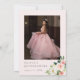 En quinceañera sparar datumkortet med blommigt med söt vattenfärg i mjuka rosa-, vit-, grönt- och guld-toner, utrymme för ett foto på baksidan och ett modernt teckensnitt. De här snyggtarna är det perfekt sättet att låta familj och vänner veta ditt datum i party. Pair med vad som helst i den samlingen för ett sammanhängande utseende.