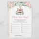 De här vackra spelkorten är en Möhippa av roligten. Ge dem bara runt under duschen där gästerna får roligt att gissa var bruden och brudgummen var i varje foto. Utformningen har resväskor och en jordglob med blommigtar med rosa vattenfärg och konfektyrer med guld.