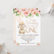 Rosa Blommigt Ro Guld Bunny 1:a födelsedag Inbjudningar