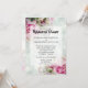 Denna vackra inbjudan till en repetitionsmiddag i bröllop har ett mönster av blommor, inklusive rosa ros och pony buds över en blek blå bakgrund. Den här chicen för söt är djärv men klassisk med blommor i elegant och bara tillräckligt med färg.