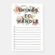 Blommigt att göra anteckningsblock med vackra blomsterarrangemang som adorerar SAK TILL HANDLE. I listan efter att den ska utföras finns kryssrutor som gör att du enkelt kan se vilka uppgifter eller uppgifter du har slutfört. Anpassa genom att lägga till ditt namn.