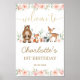 Rosa Blommigt Skogsdjur 1:a födelsedag Välkomsthäl Poster
