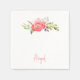 Rosa blommigt Baby Shower cocktail napkin. Script namn. Vit bakgrund.