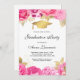 En inbjudan till elegant rosa och guld temat Studentfest. Observera att folieinformationen simuleras.