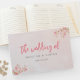 Fira kärlek i blomningen med den Rosa Blommigten Vår Cherry Blommar Bröllop Guest Bok. De ömtåliga rosorna blommor och graciös sakura grenar, som gav liv i vattenfärgen, är en perfekt bild av vår. Med ett litet modernt kalligrafiskt skript och en elegant, visuell design, lägger den här gästen bok till en feminin och romantisk beröring till din speciella dag. Sköt den hjärtliga önskemål och era älskades budskap i den här fantastiska nyckelsakén.