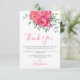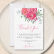 Den här söt babyduschen är ett tack för att du har ett kort med vattenfärg ro och blommor i rosans nyans med eukalyptus greenery. Det står Tack i snyggtens skripttypografi. Ursprunglig vattenfärg © Michele Davies.