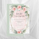 Elegant vattenfärgen blommigt ram med flicka-duschinbjudan till faux guld. Rosa och ro och andra grönsakssorter. Faux guld ram. Pastel grönt tillbaka. 100 % kundtillfredsställelse med "Zazzle"