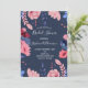 Anpassa denna vackra rosa blommigt på en marin blå bakgrund Inbjudningskort för möhippan. Du kan redigera hela fält på inbjudningens framsida och baksida.