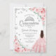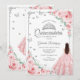 Rosa Blommigt Watercolor Ro Silver Quinceanera Inbjudningar